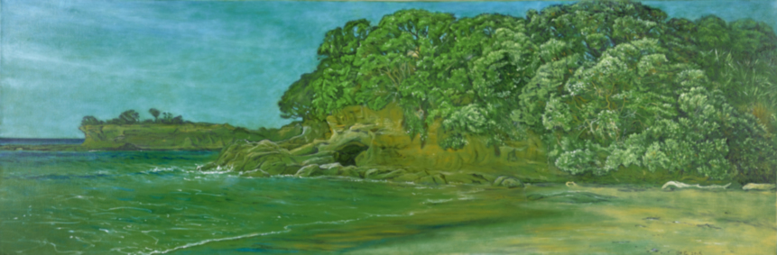 This series has five beach scenes - two at Whangamata, two at Tawharanui, and one at Flaxmill Bay (Coromandel) - which Mejun painted in 2015. It also includes a large canvas of Hunua Falls (painted in late 2014).