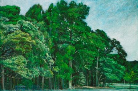 This is a fairly large series, which contains twelve canvases of various delightful nooks and cranies around Totara Park (in Manurewa). Mejun painted this over a period of two years from 2008 to 2010. They were displayed in an exhibition at the Visitors Centre of the Auckland Botanic Gardens spanning three weeks in September and October 2010.
