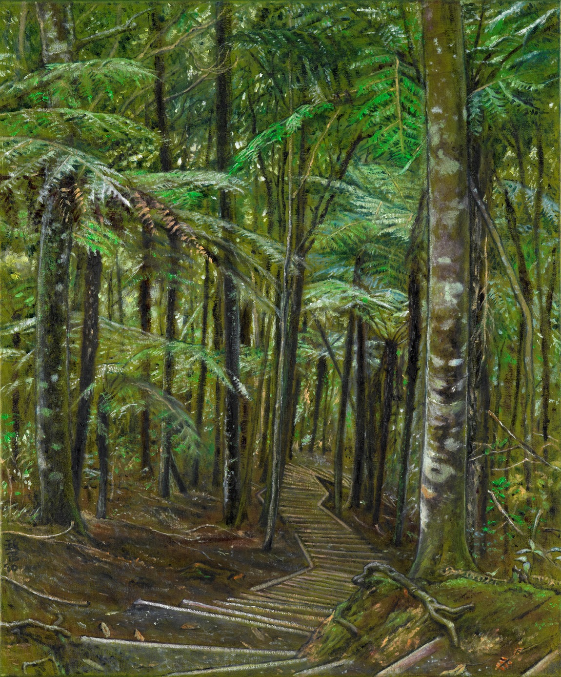 This was an exhibition of works that Mejun had done over the preceding 18 months, that captured 12 delightful views, nooks, and crannies around Totara Park - which is adjacent to the Auckland Botanic Gardens in Manurewa. Two of these paintings were included in Bruce Ringer's book Countryside in the City - A History of Totara Park Manurewa (publised by Auckland Communities Foundation in 2012 - on pages 2 and 55 and the back cover).